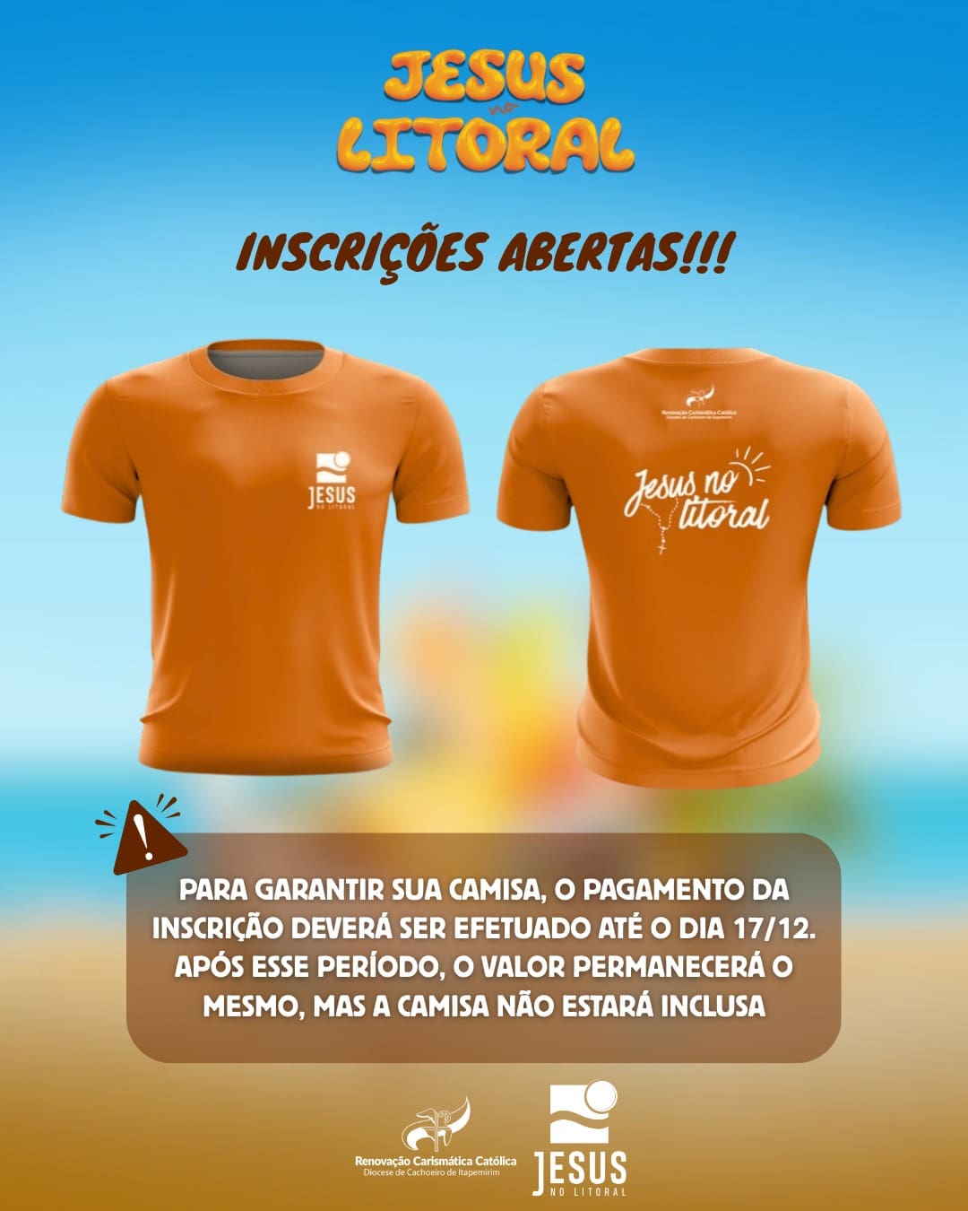As inscrições podem ser feitas AQUI. O Jesus no Litoral proporciona aos jovens uma vivência profunda de fé, missão e serviço, fortalecendo o protagonismo juvenil na Igreja e levando a mensagem do Evangelho com alegria, esperança e ousadia.