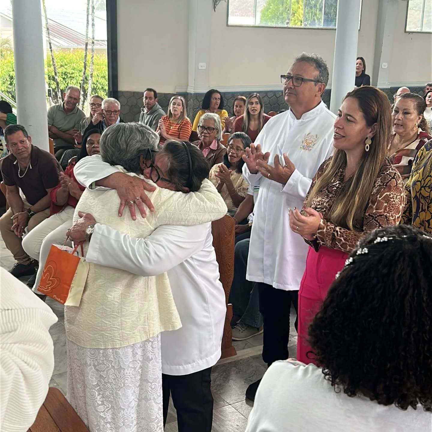 A celebração do centenário de dona Valdira foi marcada por uma missa em ação de graças presidida pelo bispo diocesano de Cachoeiro de Itapemirim, Dom Luiz Fernando Lisboa, CP, na Comunidade Nossa Senhora de Lourdes – Matriz. O momento reuniu filhos, netos, bisnetos, tataraneto, familiares, amigos e membros da comunidade, alguns deles reencontrando-se após mais de 40 anos. “Vieram pessoas que a gente não via há mais de quarenta anos. Foi uma festinha pequena, mas muito alegre”, recordou.