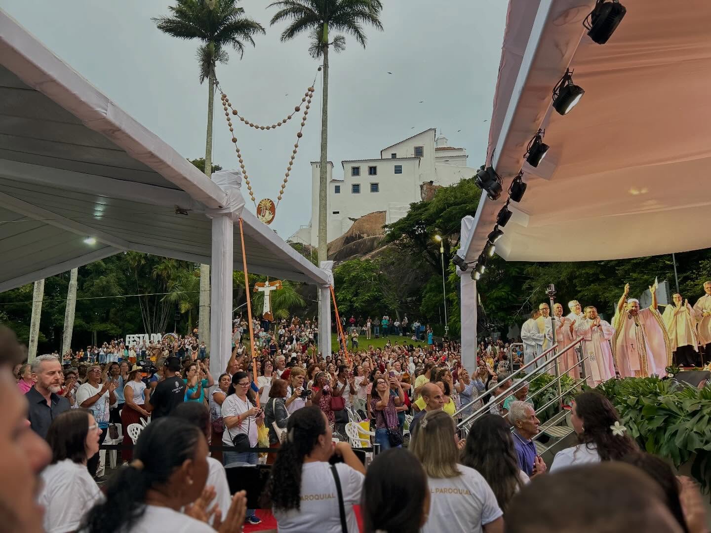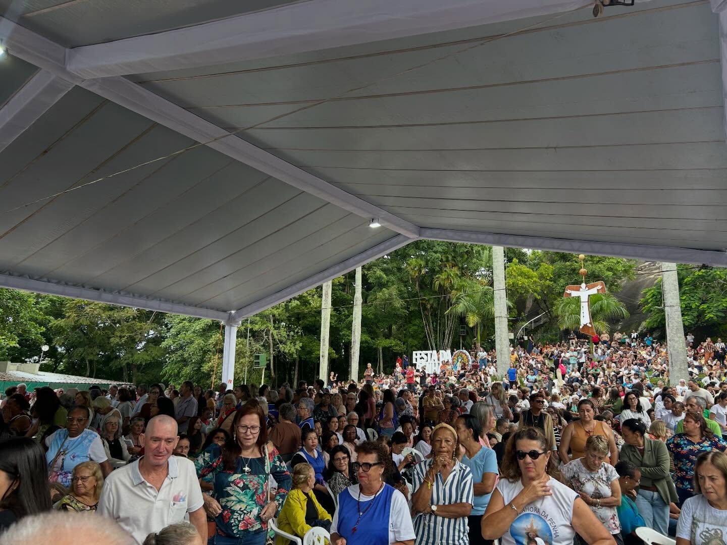 Uma das maiores peregrinações da Festa da Penha 2026 marcou o sábado, 11 de abril, reunindo mais de 2 mil fiéis no Convento da Penha, durante o sétimo dia do Oitavário em preparação à celebração da padroeira dos capixabas. O Campinho do Convento ficou completamente tomado por caravanas vindas de diversas cidades, em uma expressiva demonstração de fé e devoção popular.