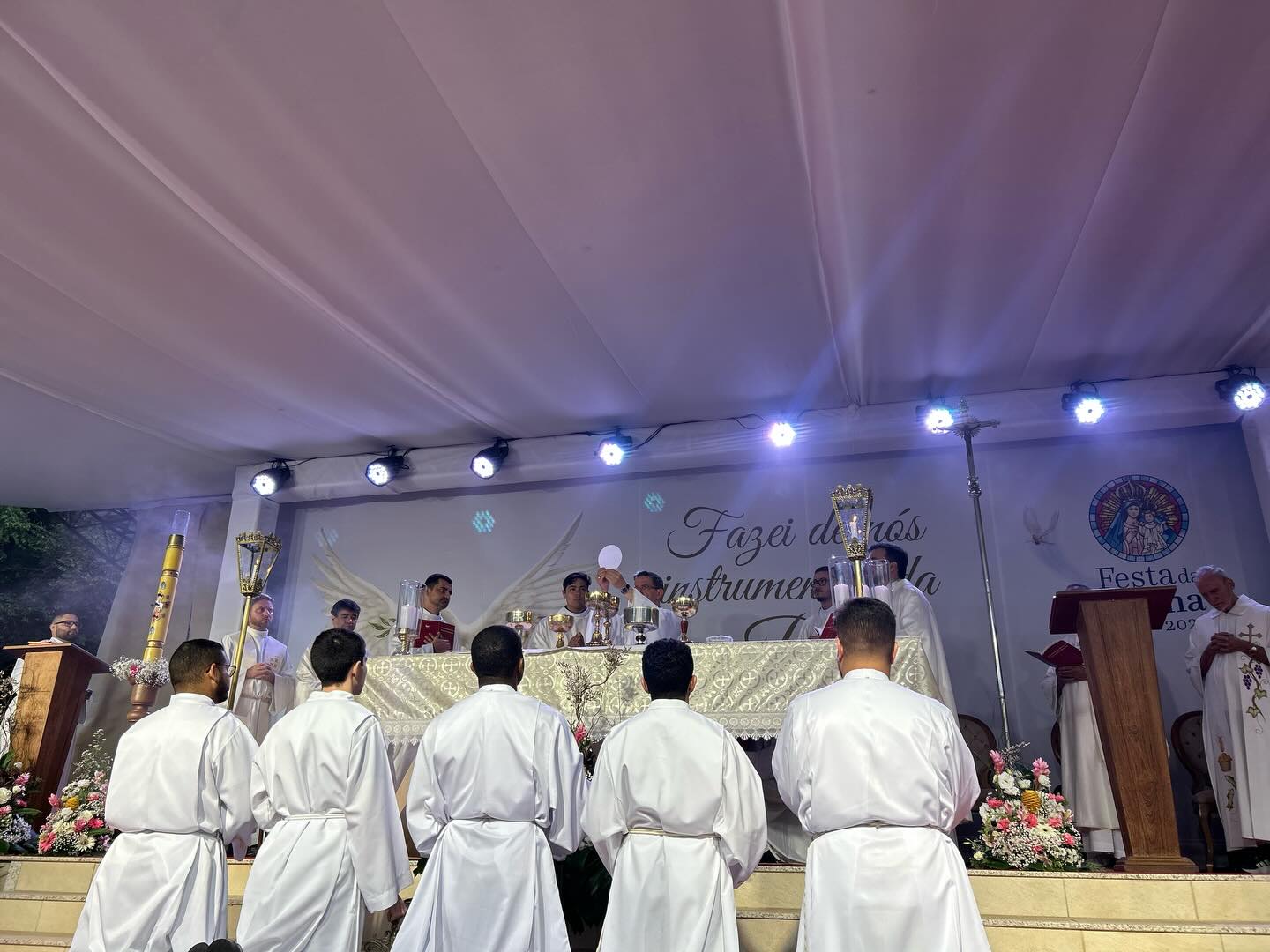 A programação seguiu com a Santa Missa presidida por Dom Luiz Fernando Lisboa, dentro do calendário oficial da festa. Inspirados pelo tema deste ano — “Fazei de nós instrumentos da paz” —, os participantes foram convidados a renovar o compromisso com a fé cristã, com foco na reconciliação, fraternidade e esperança.